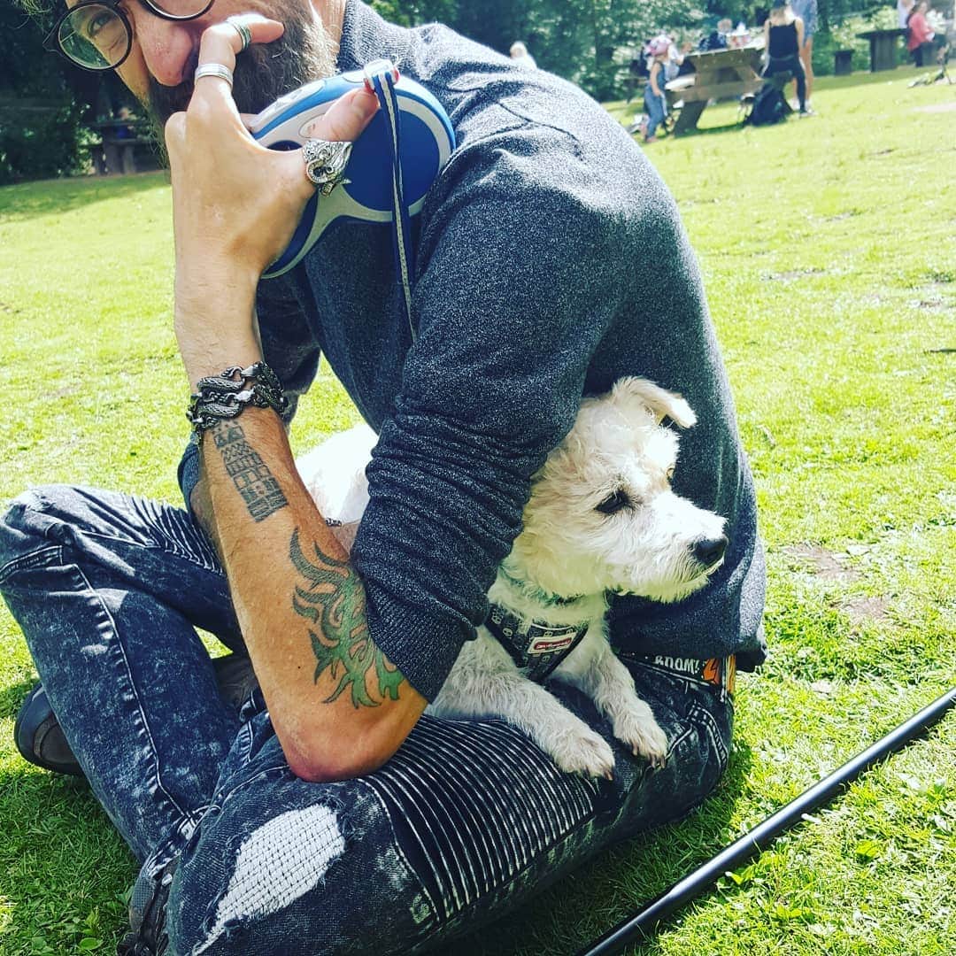 A Jack Russell-Pug cross and 100% mad. So fits in to the household well. He loves life, chasing anything and his excited ear shattering bark/squeak is a source of amusement and tinnitus.