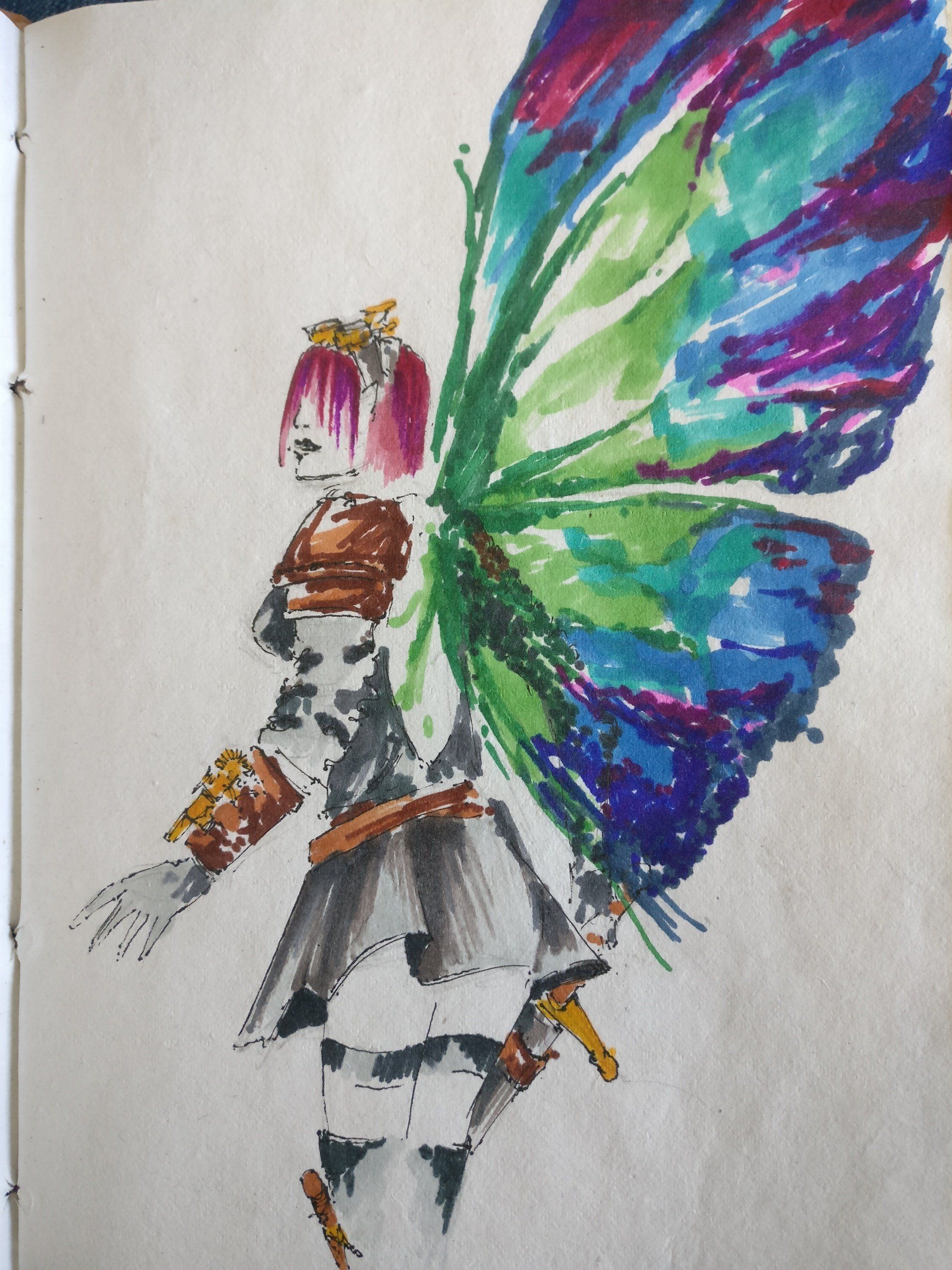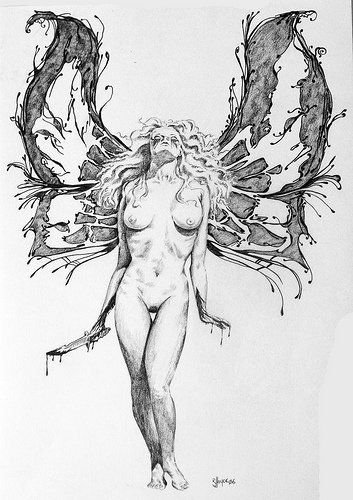 If he had been lying down on the sleek concrete, I first would have thought he was bleeding, except the blood was a dark purple instead of red. As he stood there in front of me, his wings grew out from behind him. Even then, grew is probably the wrong word to try and explain it. It was fluid, like ink being blown across a blank page, forming what at first glance resembles a butterfly’s wing. Except that there was no solid form to it. The colours continually shifting, blending into each other, like adding colouring to a glass or water.
